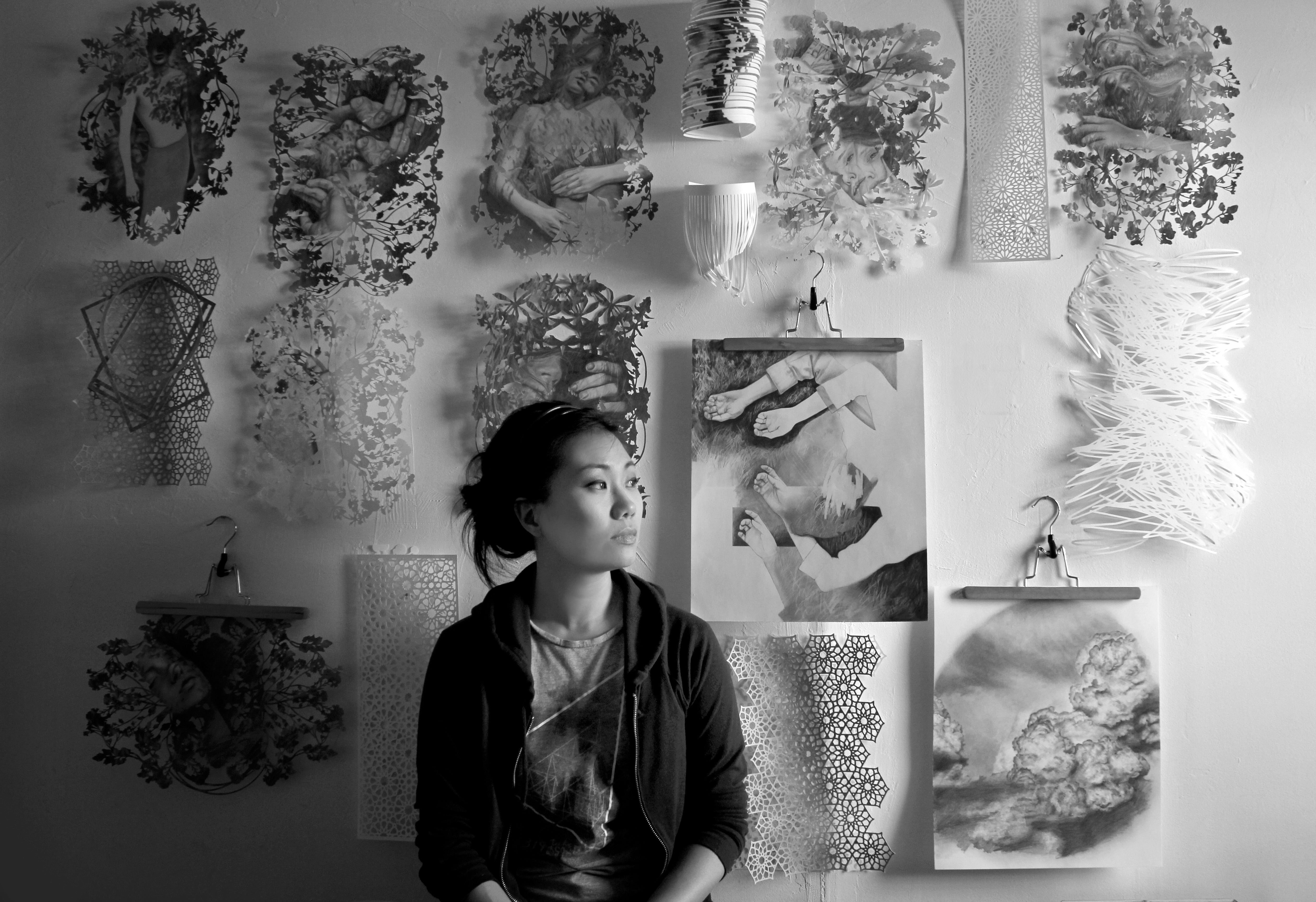 Christine Kim is a Korean Canadian paper artists whose work explores themes of identity, t transformation, and materiality. Blending traditional and contemporary techniques, she creates intricate paper cuttings, installations, and mixed media works that play with light and shadow. Her art is deeply influenced by personal narratives and cultural histories, reflecting a delicate balance between fragility and strength
